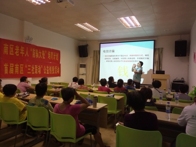 據(jù)悉,《首屆南區(qū)“三社聯(lián)動(dòng)”公益創(chuàng)投活動(dòng)-南區(qū)老年人“防騙大使”培育計(jì)劃》是以南區(qū)的長者為直接的服務(wù)對(duì)象,以活動(dòng)作為宣傳防騙知識(shí)的載體,挑選和培養(yǎng)積極主動(dòng)的長者組建“防騙大使”服務(wù)隊(duì),通過“防騙大使”將“防騙”的工作滲透到社區(qū),提升社區(qū)長者的防騙意識(shí)和防騙的能力。