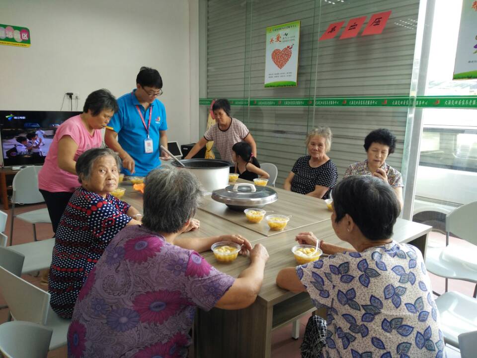 2016年8月5日,嵐田居家養(yǎng)老服務(wù)中心開展的“炎炎夏日送清涼,絲絲關(guān)愛入嵐田”送清涼活動(dòng),為嵐田社區(qū)孤寡、高齡的長者們送上蕃薯糖水。
